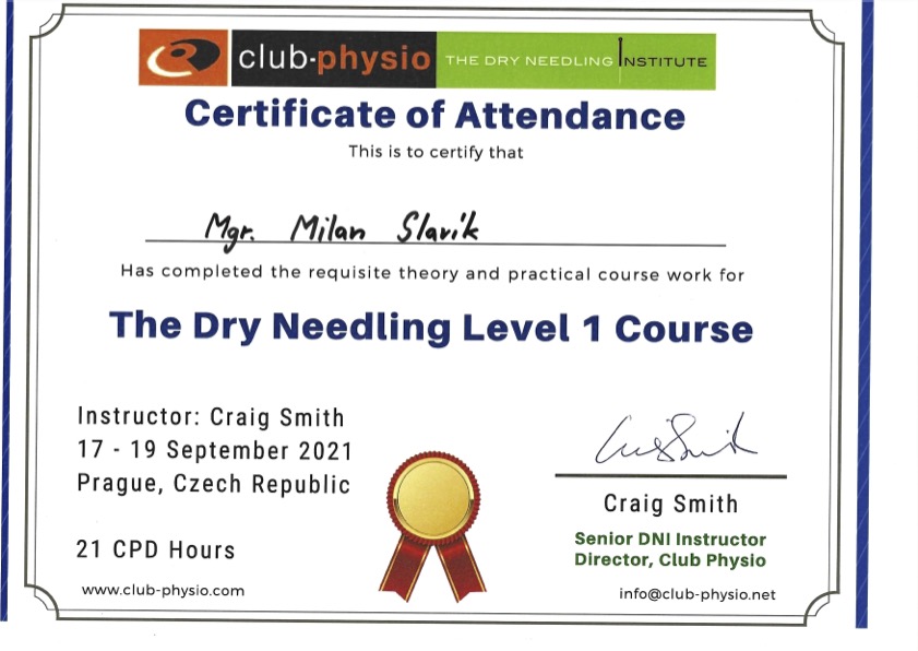 Mgr. Milan Slavík - fyzioterapeut specialista - nestátní zdravotnické zařízení